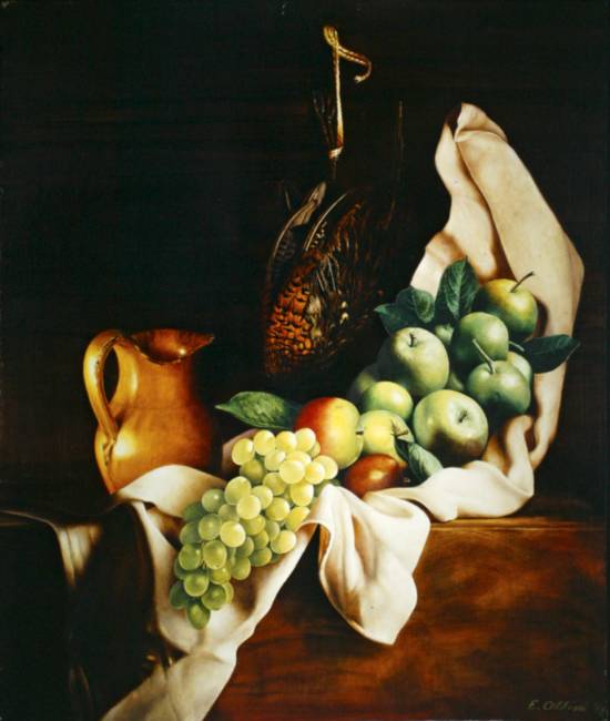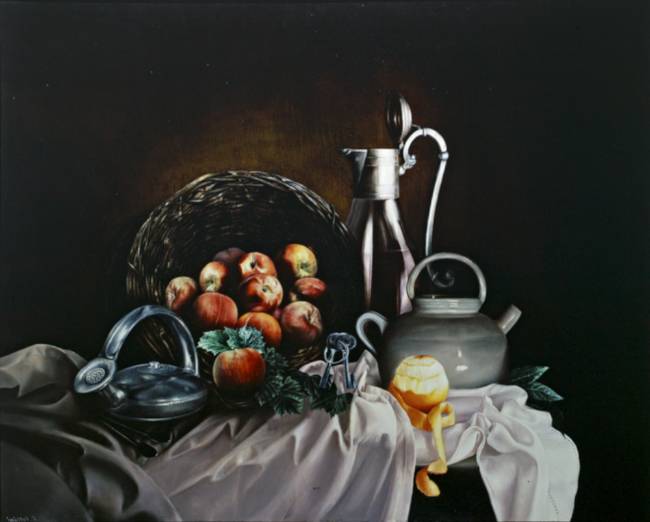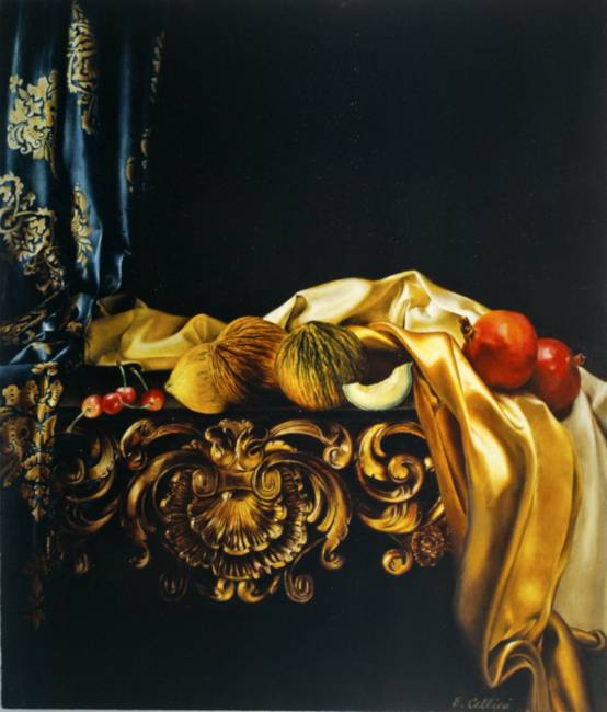 The resultant piece, "Life's Journey," from the early '80s, is a bit busy by her later standards ("It was my first painting, so I put everything into it," she said of the still life, which features fruit, books, coins, a coffee pot and a skull), but it convinced her detractor. "He was so surprised, because my first oil painting, I looked like an artist, someone who had taken lessons," Cellini recalled. "After that first painting, I didn't want to do anything else."