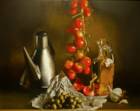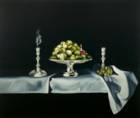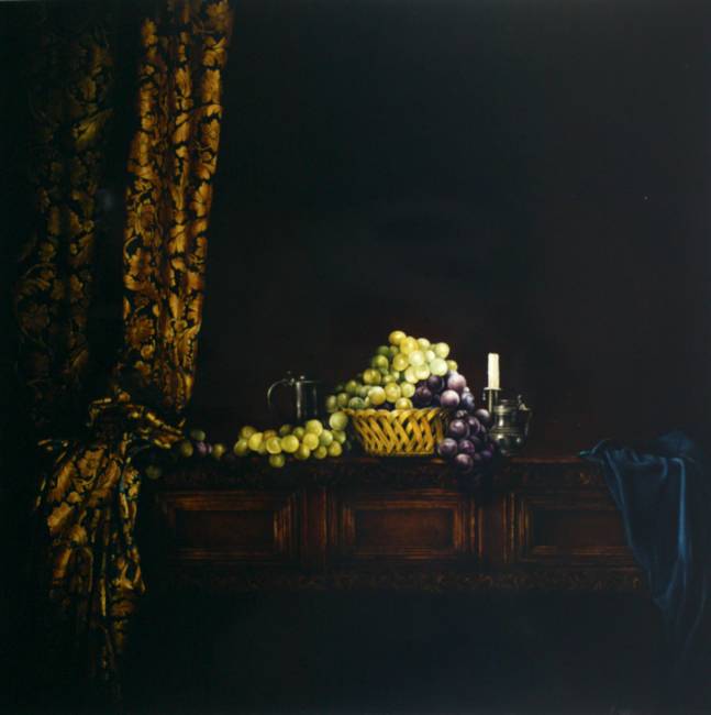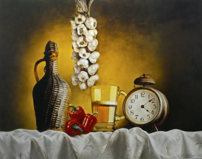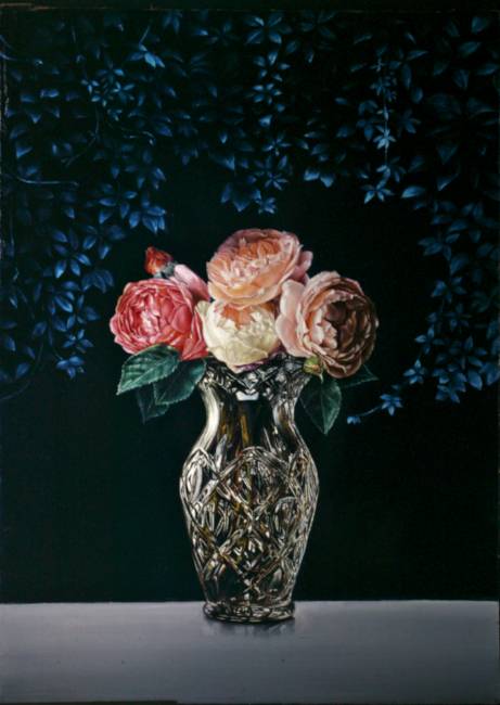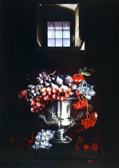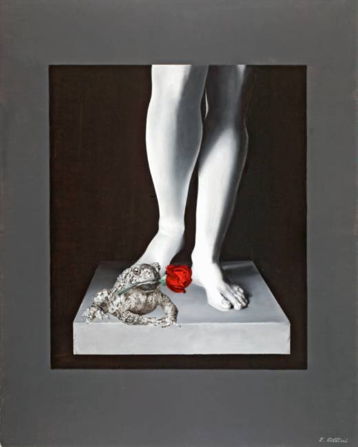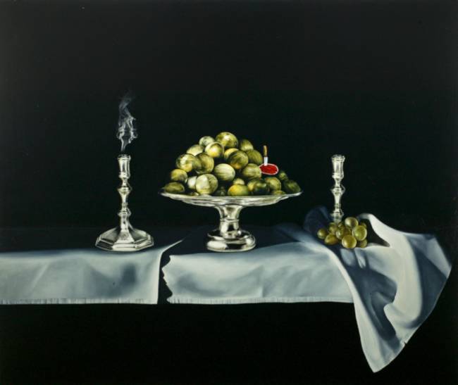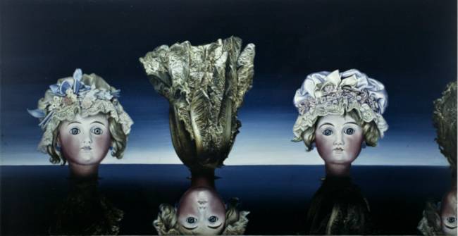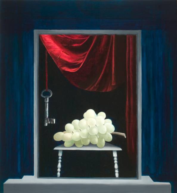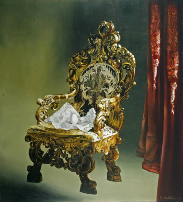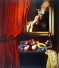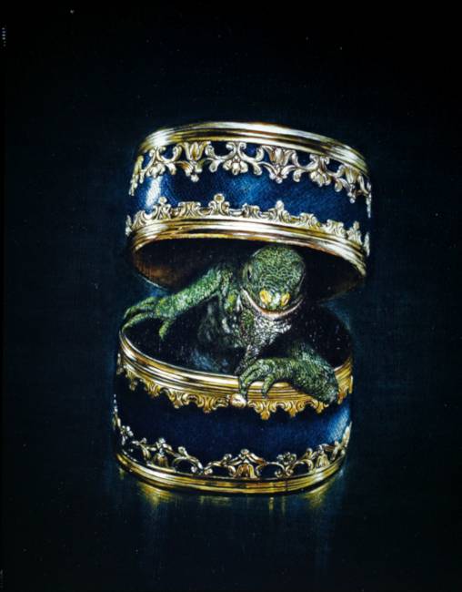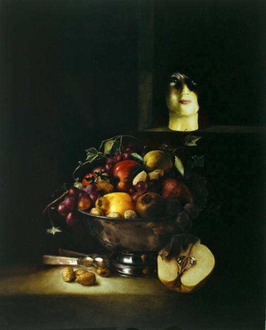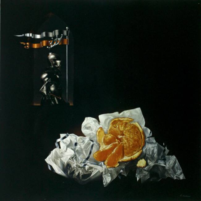 Cellini's art reveals a parallel refusal to be static. The current retrospective is almost exclusively still-life paintings, but she has discovered and explored endless corners within those boundaries: fantasy, humor and stone-cold realism; infinite variations on lighting and composition; a huge color palette. An image of Nick Nolte improbably appears in the 1992 piece "Revelation"; Cellini says she was enormously inspired by Martin Scorsese's segment of the film "New York Stories," in which Nolte played a painter at a creative impasse.