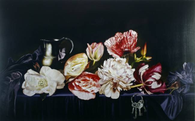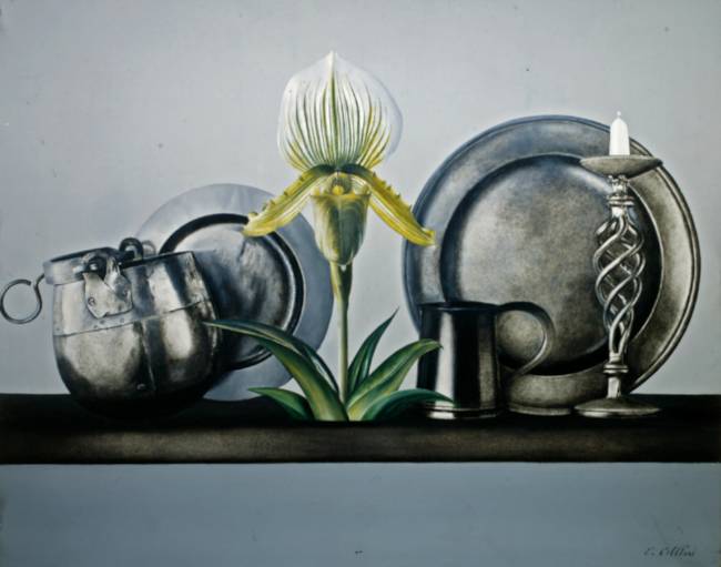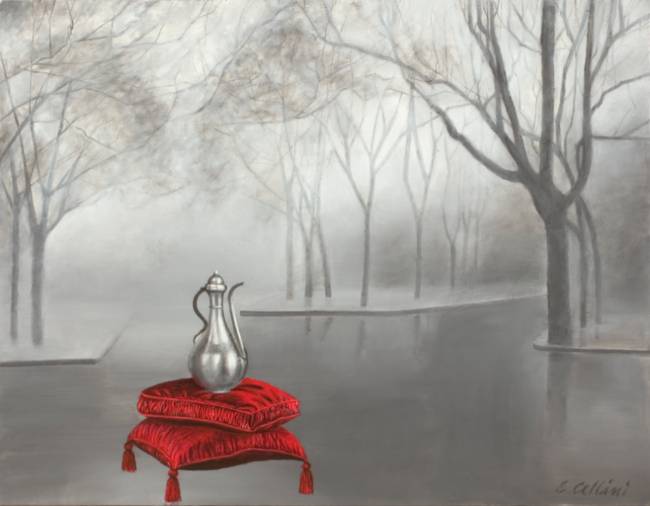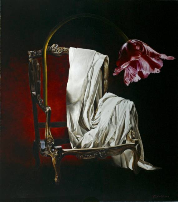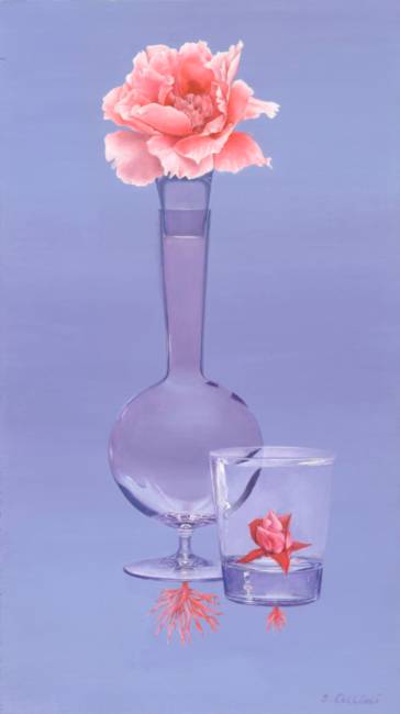 Cellini's images may seem like super-realistic recreations of solid objects. But, she said, there is a narrative taking place in each one, and some investigation can be rewarded. "Passion," a 2000 work not included in the current show, is a knock-out of imagination, an oversized pink peony stuffed into a canopy bed. "She was missing her husband," explained artist and gallery co-owner Ingrid Dee Magidson, who practically worships Cellini, visiting her in New Jersey once a year.