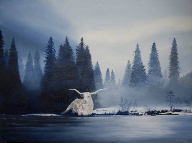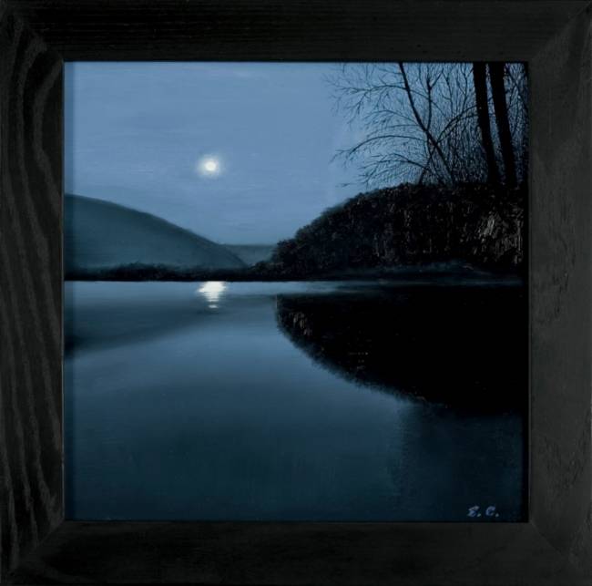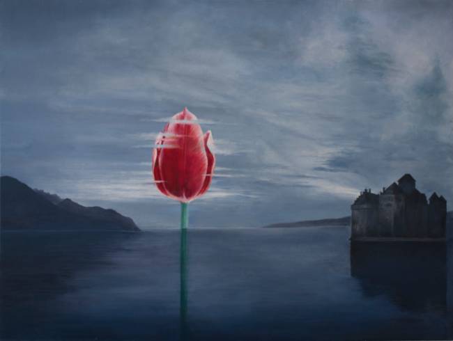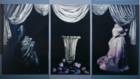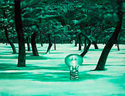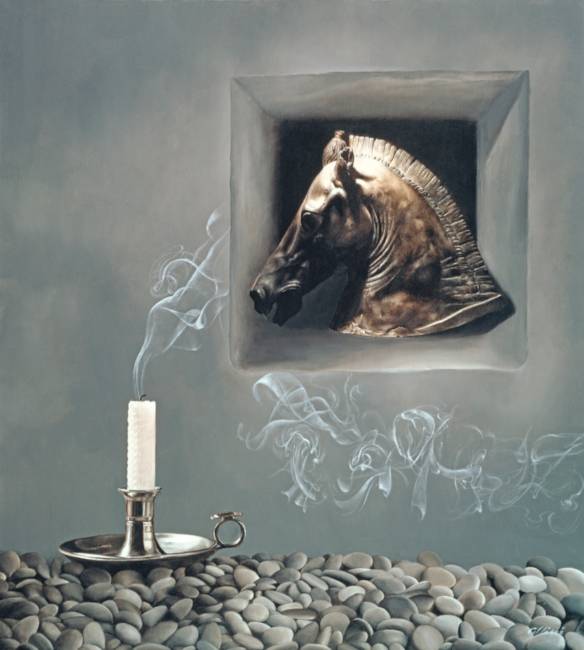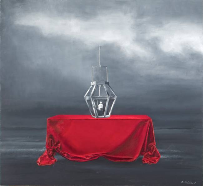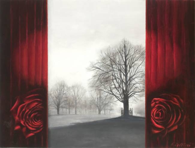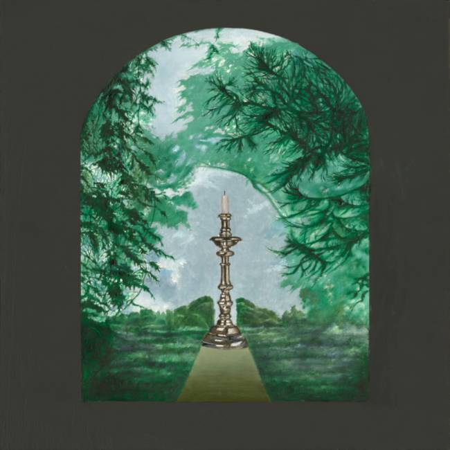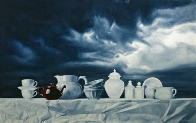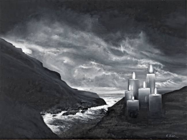 Perhaps the most distinctive work in Dreams and Clouds " apart from the one that includes a likeness of George Carlin " is also the most recent. "Requiem" is nearly unique in two ways: It is all gray, and it is a landscape " some cliffs overlook a stormy ocean, with a set of candles in the foreground.