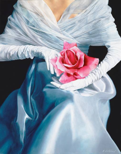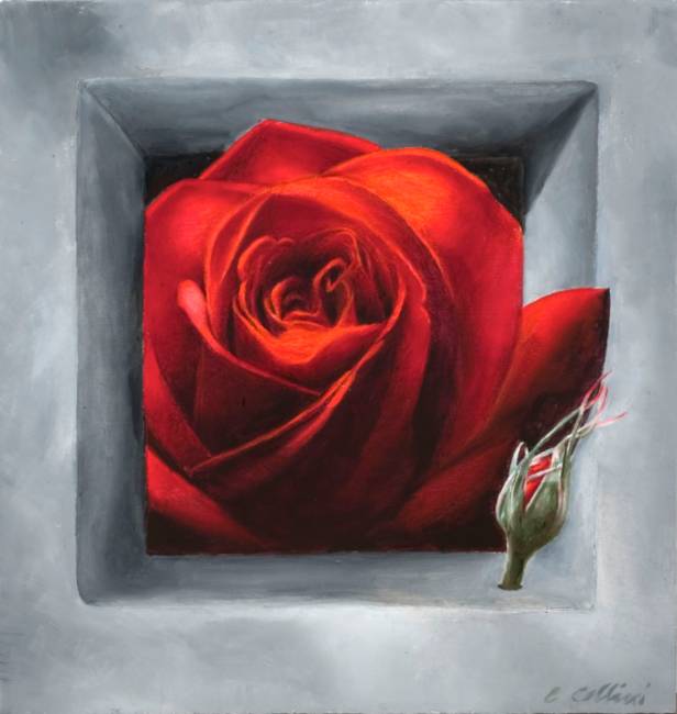 "The Gift" is an image of a rose encased in glass; Cellini says it was inspired by a special friendship. "Friendship is the most important thing in the world," she said. "The gift has to be nurtured, taken care of, protected. The rose symbolizes the profound connections with another human being."